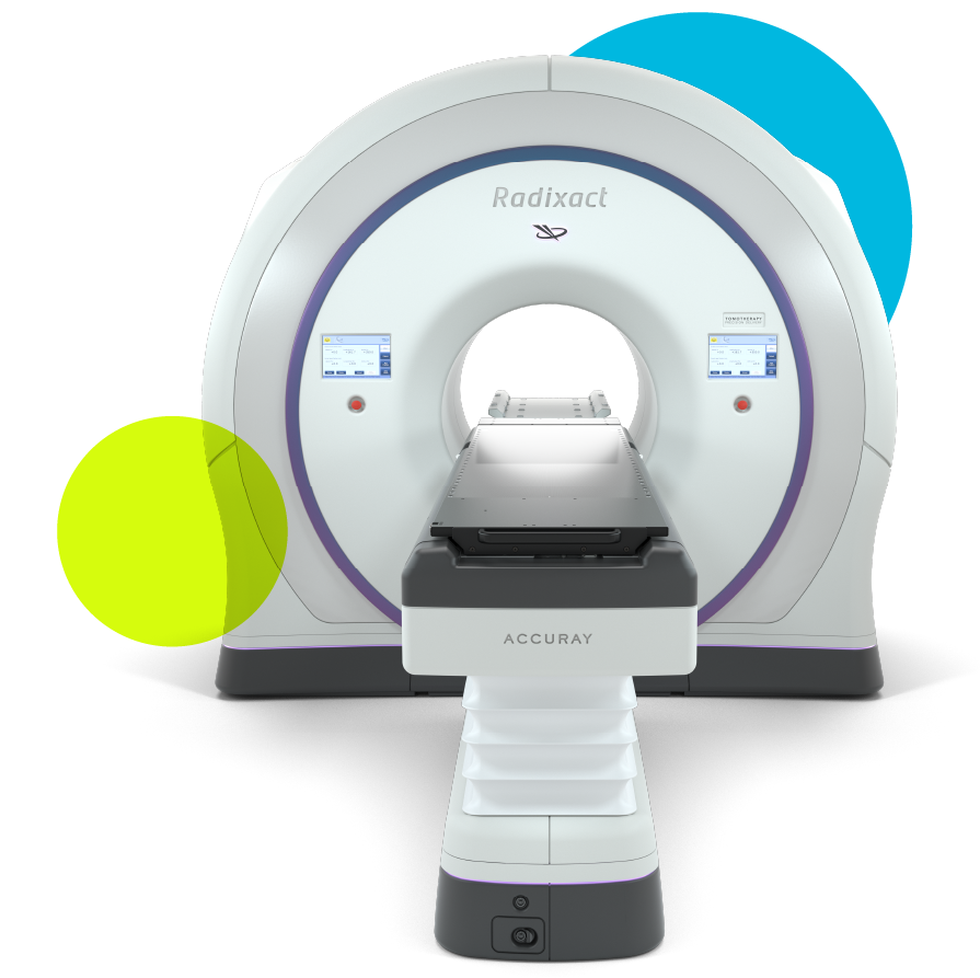 Ovaj tip aparata je sličan kao aparatu za CT. Prilikom sprovođenja tretmana, tomoterapijski prsten se vrti i pravi snimke iz različitih uglova i prilikom detetekcije tumoroidnog tkiva istovremeno sa snimanjem vrši i zračenje. Implementacijom različitih doza, iz različitih uglova i različitog inteziteta, pruža takav tretman koji maksimalno zrači tumor i u potpunosti izbegava zdravo tkivo.